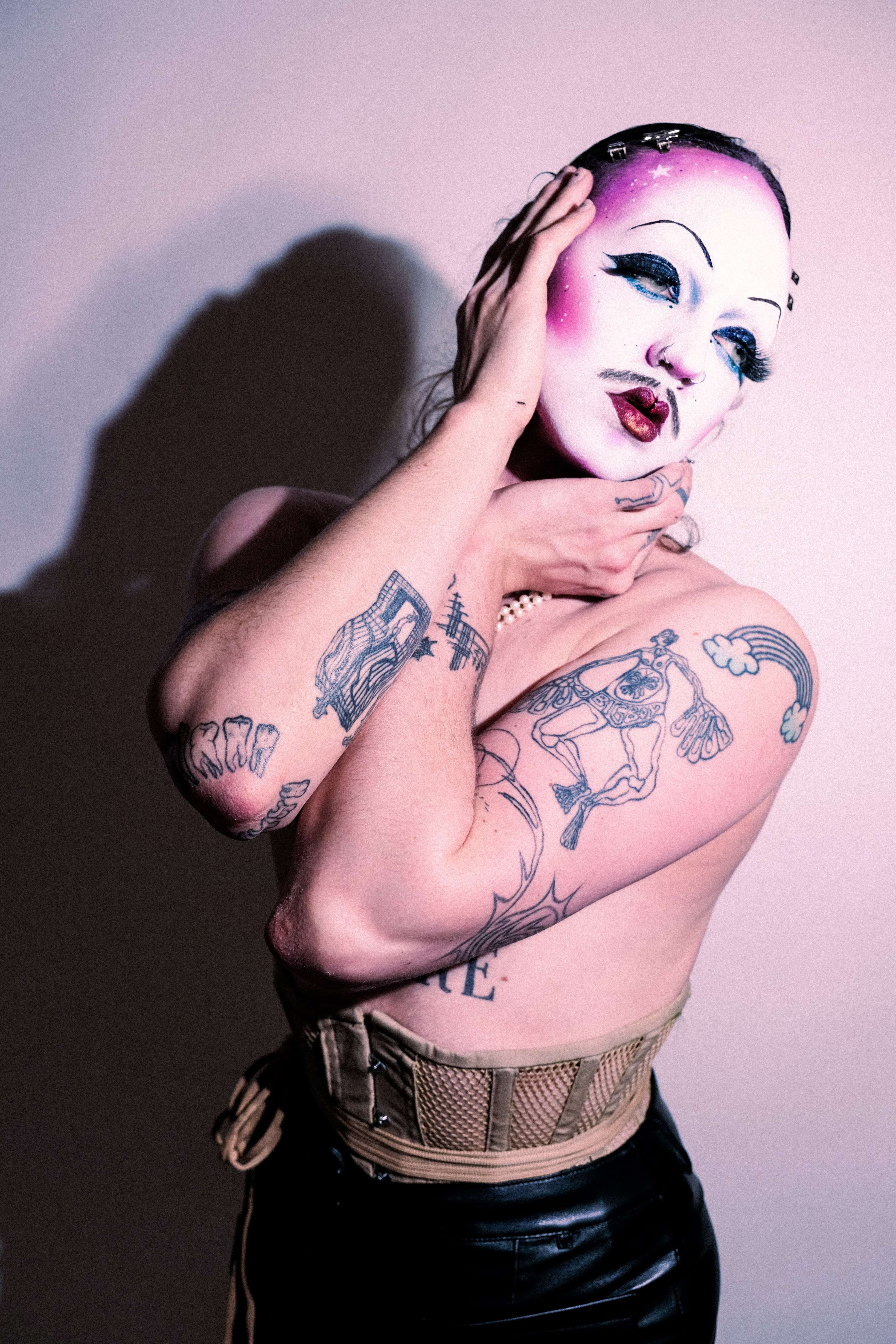 Since 2018, they have been performing in nightlife as the drag clown persona Sascha the Fool. Mixing clowning with a trash punk aesthetic and pleasure politics, their grotesque performances take from freakshow acts, music and dance, with a strong theatricality. Drag has brought them to a multitude of cities and countries ; they won the Trashiest Act in the 2025 Spat! Nightlife Awards.
