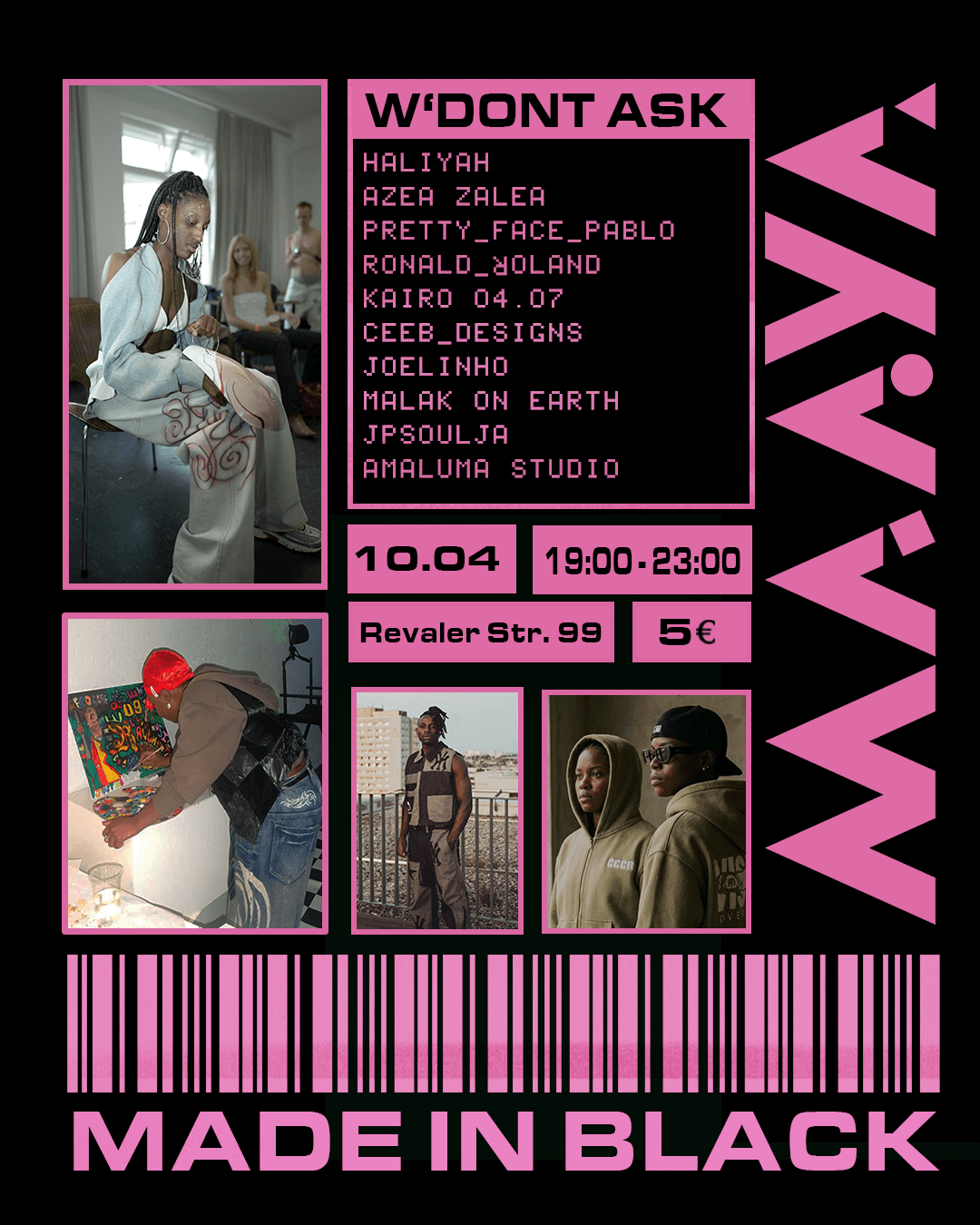 On 10 April from 19:00 to 23:00, the debut evening of Made in Black, a new Berlin-based immersive art collective aimed at bringing artists together across disciplines, will host their debut evening at Maaya. The evening brings together fashion, visual art, and performance. The program features a fashion walk with works from three Berlin designers, a mixed‑media art exhibition showcasing contributions from several artists, including one presenting their first exhibition and creating live art on site. This multi-disciplinary evening fuses dance, vocal performance, and DJ sets to create a varied visual and interactive space. DJ sets and projection mappings will also continue throughout the night. Join MIB in their special first event next Friday. More info here.