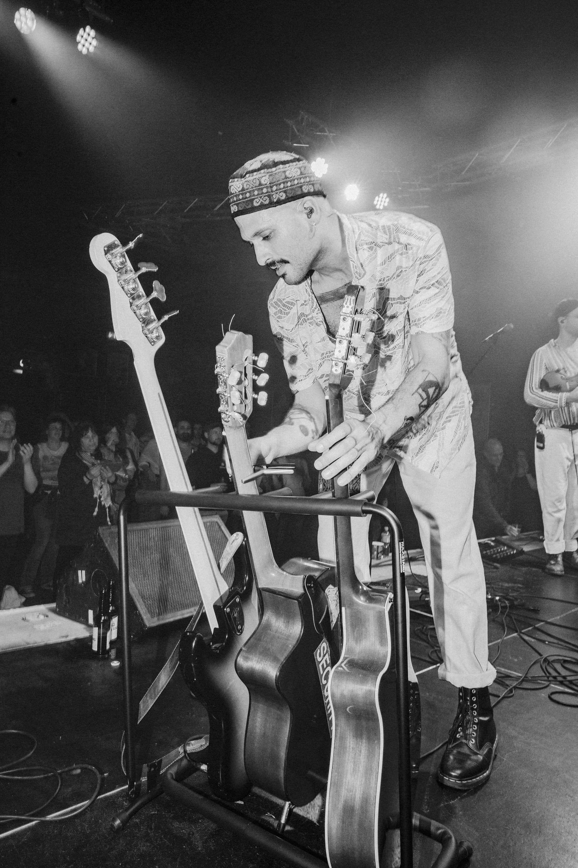 Palestinian musician Ahmed Eid (co-founder of Bukahara) is raising funds to support his project Palestine Music Space, an independent community studio in Ramallah, Palestine, where young musicians rehearse, record and receive training free of charge, as well as his debut solo album, min ghazzeh la baghdad, min haifa la beirut, released this month. The record blends alternative pop, rock, electronic elements, and Arabic poetry, and was written during the ongoing violence against the Palestinian people and reflects lived experience in this moment, from grief and rage to memory, love, and the insistence on hope.