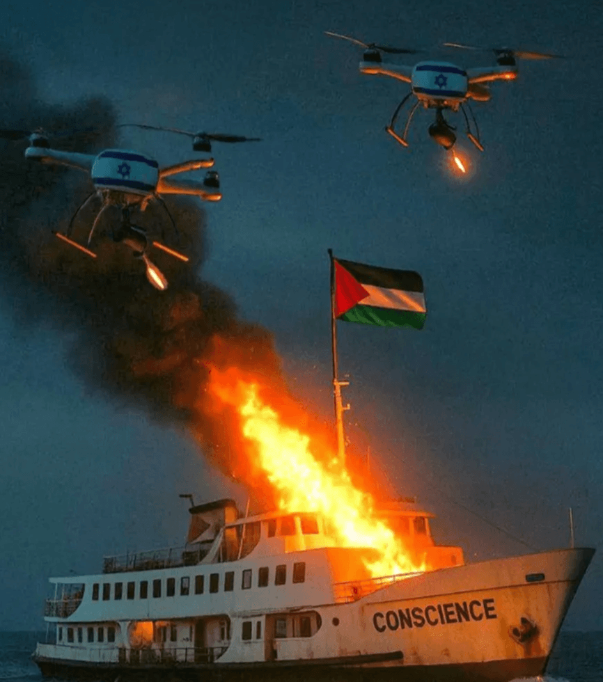 ‘Conscience’, a humanitarian aid ship bound for Gaza, was bombed off the coast of Malta on 1 May. The unarmed ship was carrying 12 aid personnel and four civilian passengers, along with supplies and donations. While on route to Malta to pick up activists including Greta Thunberg, the vessel was attacked by two drones, striking the engine and leaving the ship at risk of sinking.