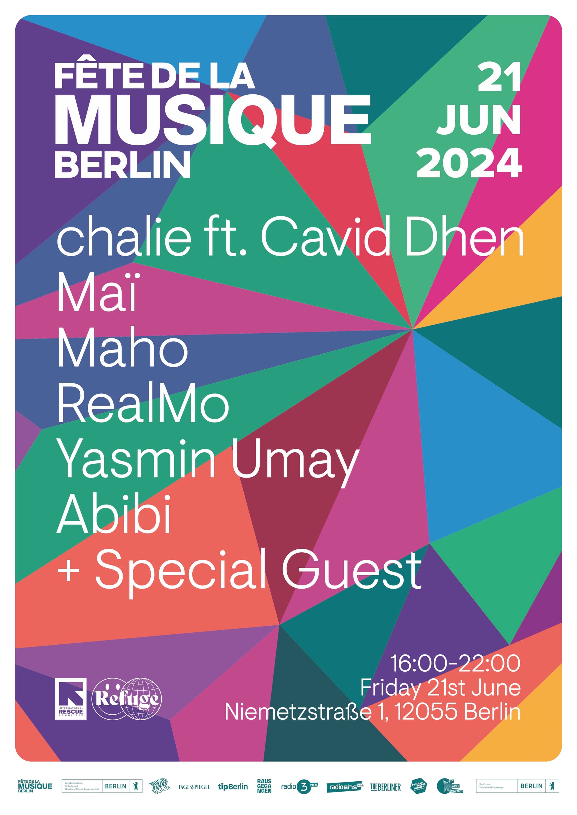 On Friday 21st, we also celebrate Berlin's annual Fête de la Musique at Niemetzstraße in collaboration with International Rescue Committee. This free-to-attend and family friendly event will involve six live performances between 4PM and 10PM, with drinks supplied by Fuerst Wiacek, ChariTea and Lemonaid+.