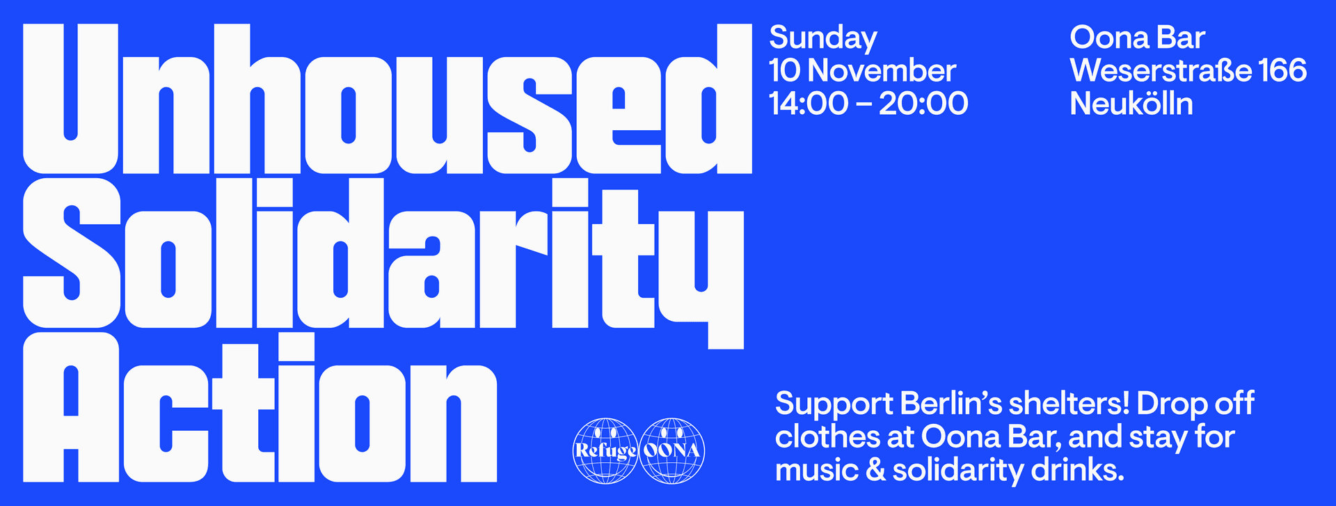 As winter sets in, we are collecting clothes at Oona Bar this Sunday between 2PM - 8PM for Berliner Stadtmission. Come by, drop off what you can, and stay for music and drinks.